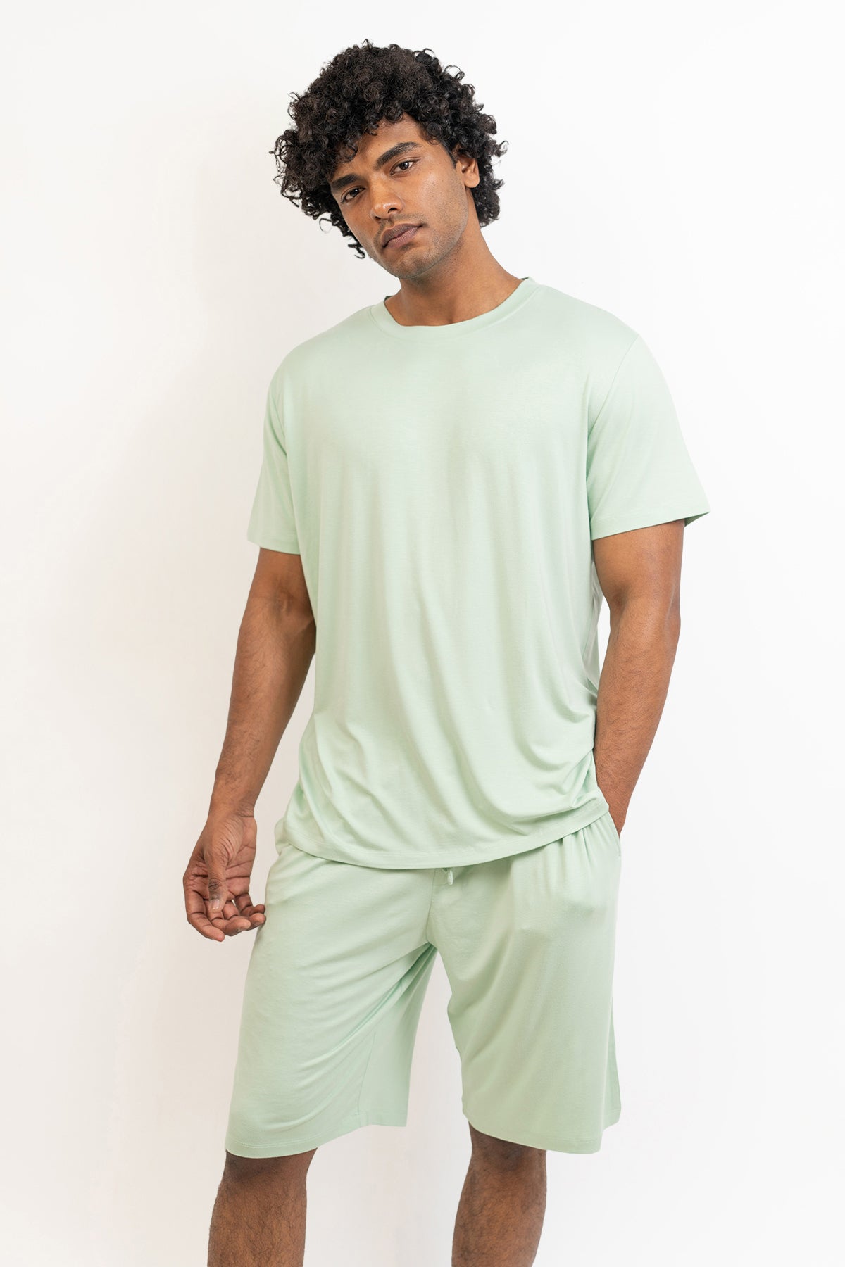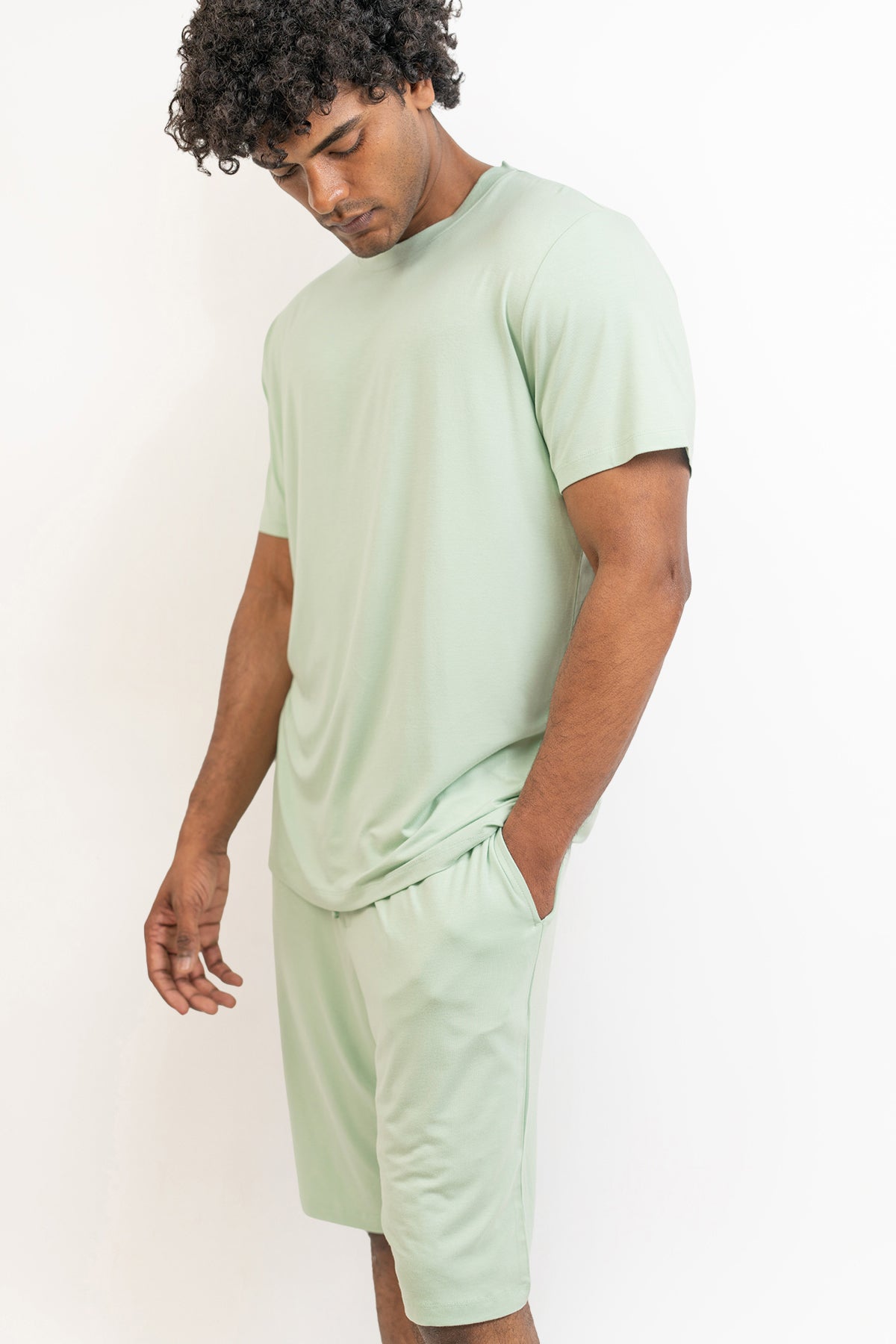 Men's short sleeves see and shorts set-Bh Green